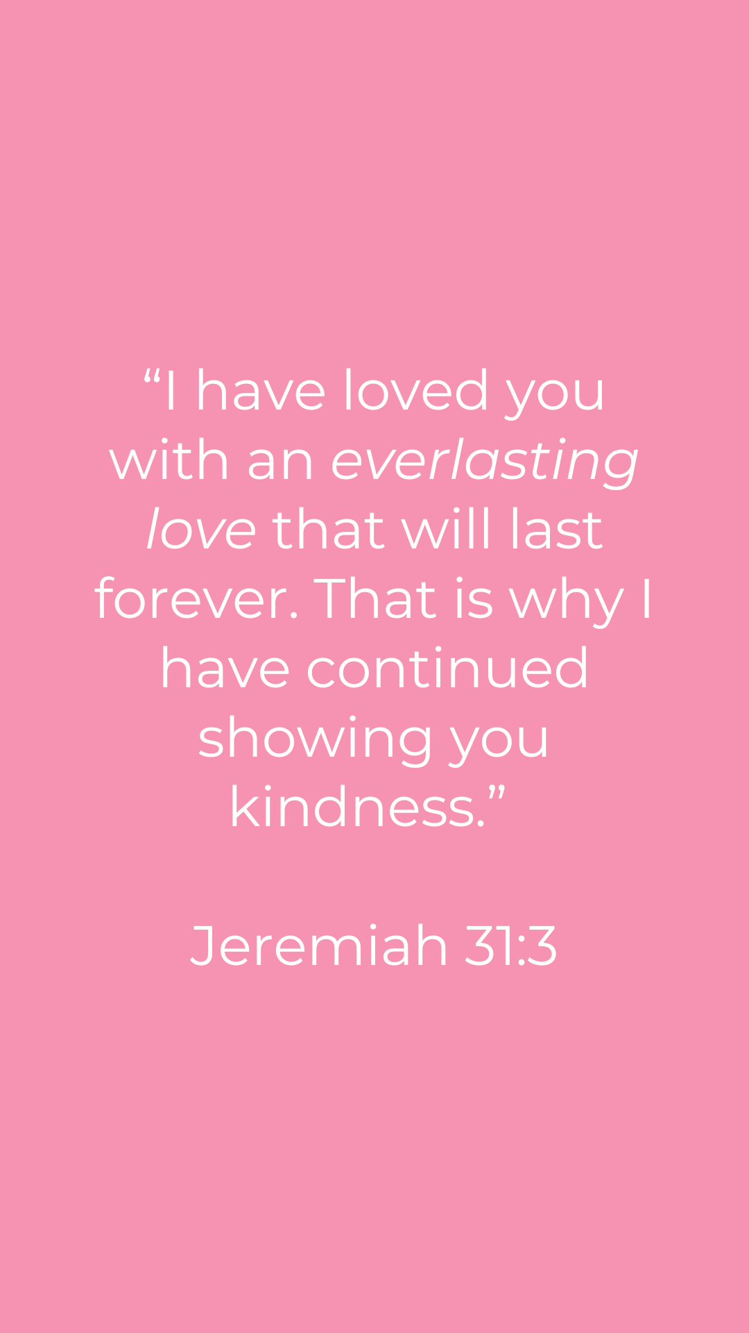 “I have loved you with an everlasting love that will last forever. That is why I have continued showing you kindness.” Jeremiah 31:3